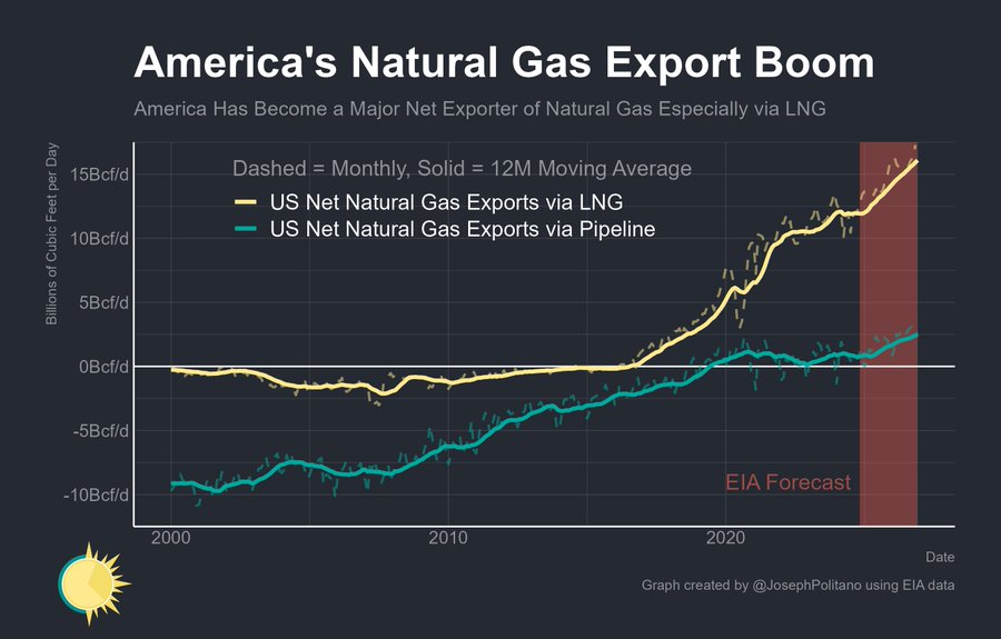 The EIA also projects that US net natural gas production will increase 1.3% in 2025 and 2.7% in 2026. Exports will rise to record highs in 2025 and 2026 as additional liquefied natural gas (LNG) export terminals come online. I agree, and EQT will benefit.