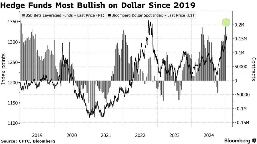 Bullish dollar positioning is at its highest since January 2019. Crowded trades almost never work out.