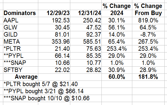 The Digital Dominators had a great 2024 as AI fever spread to Corning and SoftBank, while driving my timely recommendation of Palantir. I expect Snap to be the star in 2025.