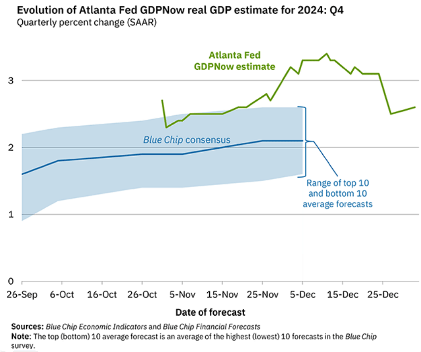 The Atlanta Fed’s GDPNow model estimate of December quarter real GDP growth slipped from 3.1% to 2.6% due to a big drop in their estimate of private domestic investment growth.