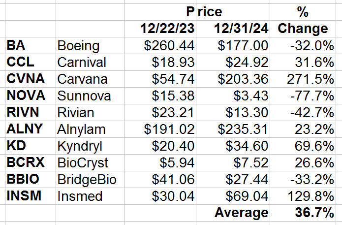 So I am planning to follow the stocks I’ve recommended, but not make any new recommendations. We should see some substantial bounces in 2025, like ScyNexis’ 45% over the last three days (I should have bought SCYX instead of AKBA!) but I’m not planning to recommend sale of any biotech until it is in home run status.