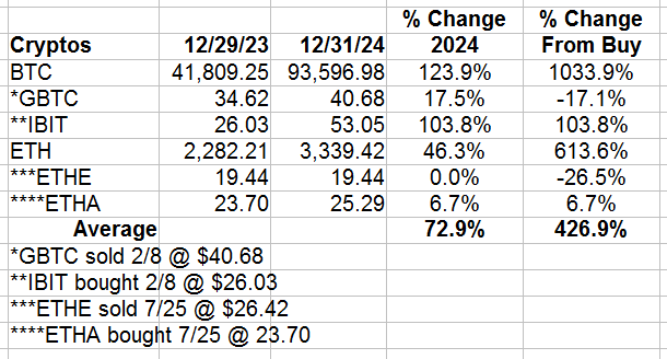 Crypto: the ETHE prices for 2023 & 2024 are the same. 2024 s/b your sale price of $26.42