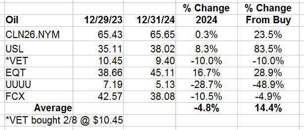 MM – With regard to VET, would you please provide the source of the 2025 free cash flow estimate ($450 million or $2.90/share) cited above? I did not notice that number being explicitly provided in VET’s 12/23/24 summary of the Westbrick acquisition. Thanks.