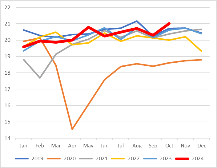 The momentum rally since the election clearly is animal spirits returning in expectation of an extension of President Trump’s tax cuts and deregulation. That means they are at least partly – and probably mostly – discounted. Following the 2016 election, the market rallied 10% from election day until the late January inauguration, and then consolidated for several months. Most likely. that’s a good model for 2025. That rally did resume and 2017 finished up 22%.