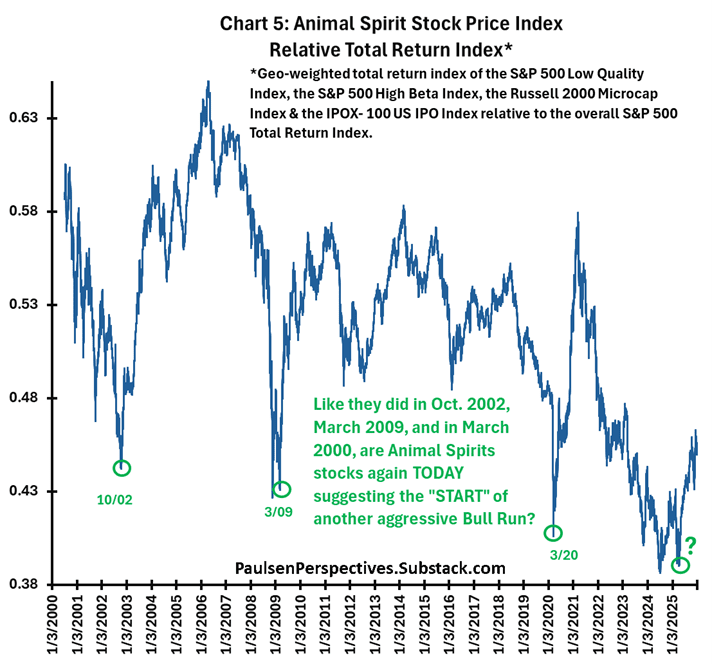 In fact, the “Animal Spirits” stocks in the S&P 500 Low Quality Index, the S&P 500 High Beta Index, the Russell 2000 Microcap Index, and the IPOX-100 US IPO Index are already leading the stock market. That’s the signal of a new risk-on bull market.