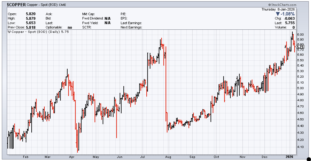 Energy – I’ve been really wrong on the price of oil. I still don’t see a lot of new supply with US shale production falling. The idea that Venezuela’s very sour crude oil will make any difference to world supply is nuts. And they don’t have 300 billion barrels of reserves – that’s their guess. It’s probably more like 30 billion barrels, and it will be three to five years before production increases. But I’m either going to have to roll the July 2026 futures recommendation forward or just give up on the energy recommendations entirely. Vermilion (VET) is a European natural gas play in disguise and EQT (EQT) will be a big beneficiary of AI data center energy demand, so I’d hate to cut them loose.