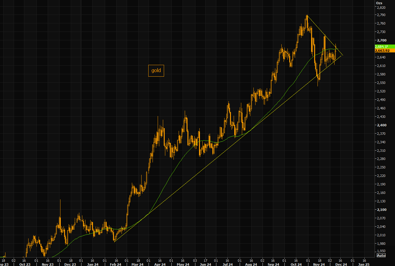 Gold ($2,705.40) prices hit two-week highs on Tuesday on the collapse of Syria’s ruling Assad dynasty, anticipation of a Fed interest rate cut next week, and renewed buying by the People’s Bank of China (PBoC) following a six-month pause. In 2023, China was the world’s largest official sector buyer of gold, but the PBOC paused its 18-month buying streak in May. After two quarters of no gold purchases, the PBoC just resumed buying. They added 160,000 troy ounces – about 5½ tons – in November, bringing their reserves to 72.96 million ounces.