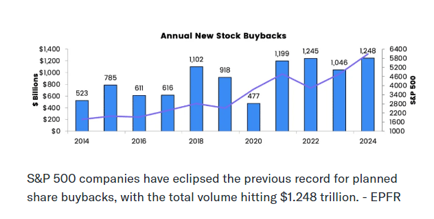 Stock buyback announcements are roaring to a $1.248 trillion record high.