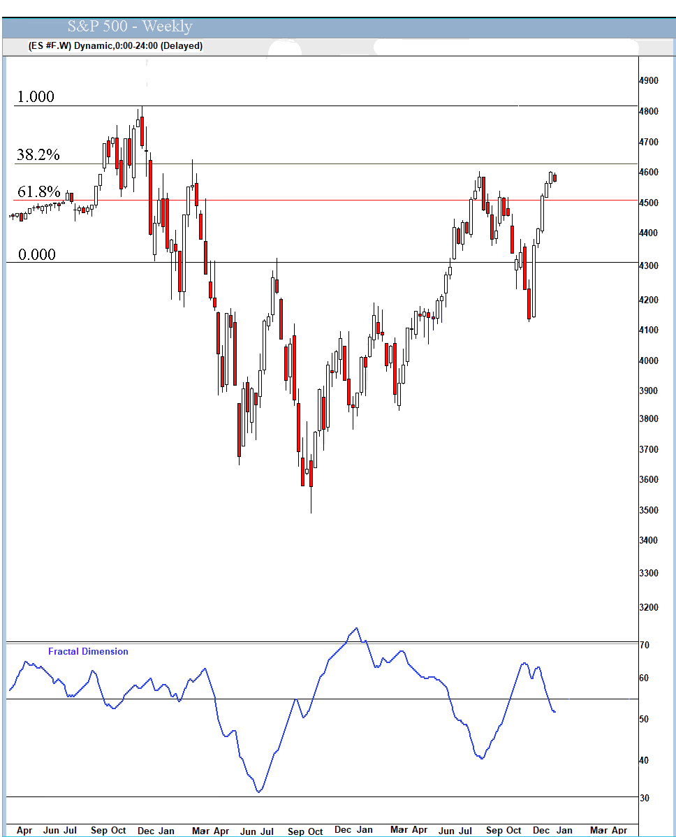 The fractal dimension stalled but still is signaling a major new uptrend is underway.
