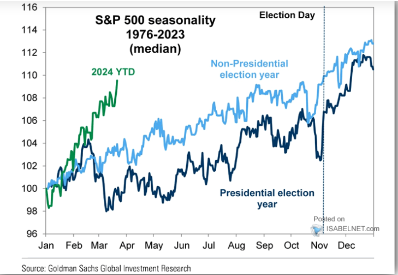 The S&P 500 added 1.0% since last Thursday as inflation reality came in not much worse than – maybe even a little bit better than – inflation fears. The Index is up 9.0% year-to-date, and has been much stronger seasonally that in a typical Presidential election year. You could argue that means (1) it’s ahead of itself; or, (2) that it’s a powerful sign of underlying strength. I think it’s both, so we’ll probably see high-level churning through the election.