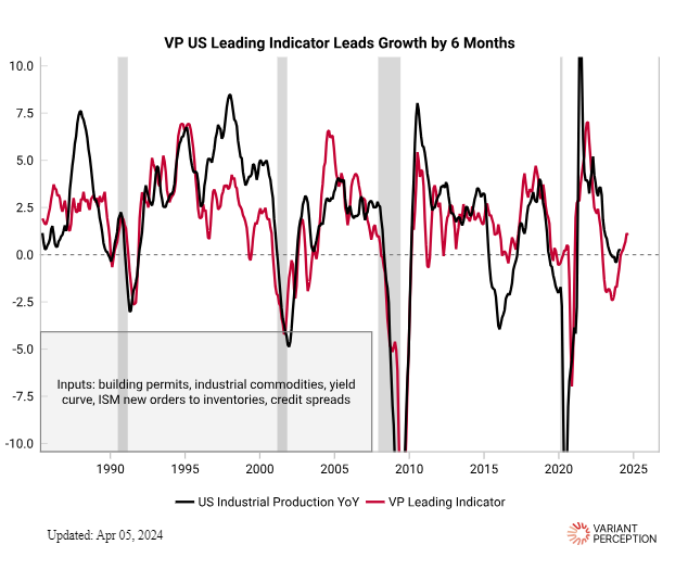 Variant Perception has a proprietary VP Leading Indicator of US economic conditions, and it is clearly inflecting higher: