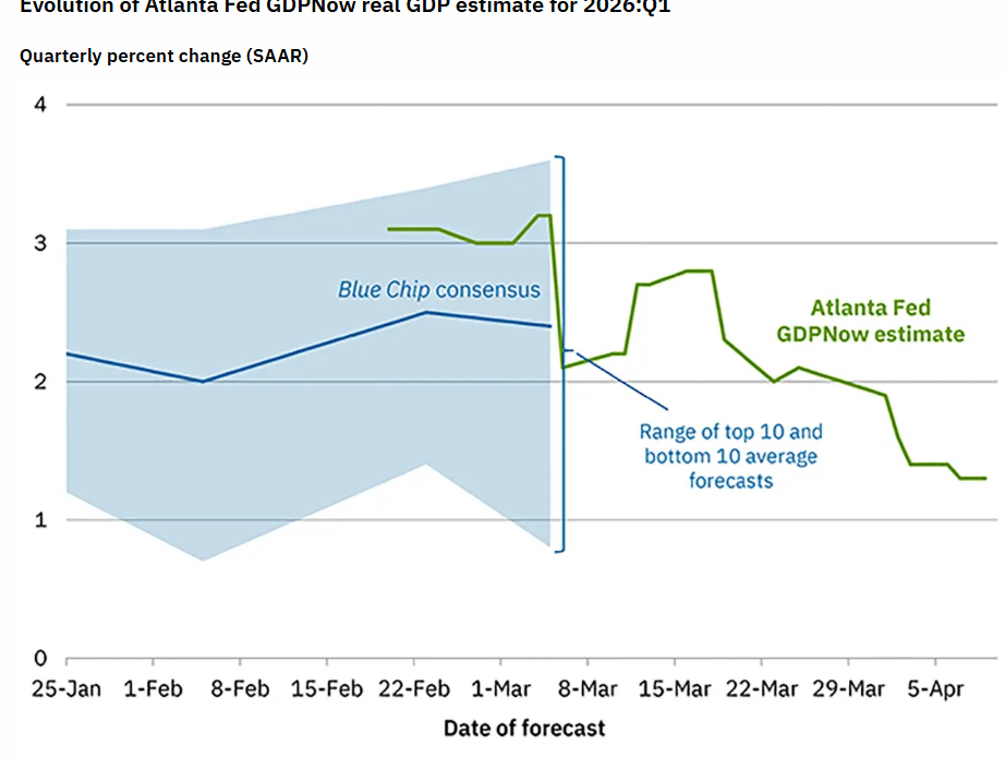 The Atlanta Fed’s GDPNow model estimate of March quarter real GDP growth has fallen to +1.3%, well below the consensus expectation. The real question will be whether stocks go up because the Fed is more likely to cut, or stocks go down because the economy is stalling out. We’ll find out at 8:30am on April 30, which happens to be the date of the next issue of New World Investor.