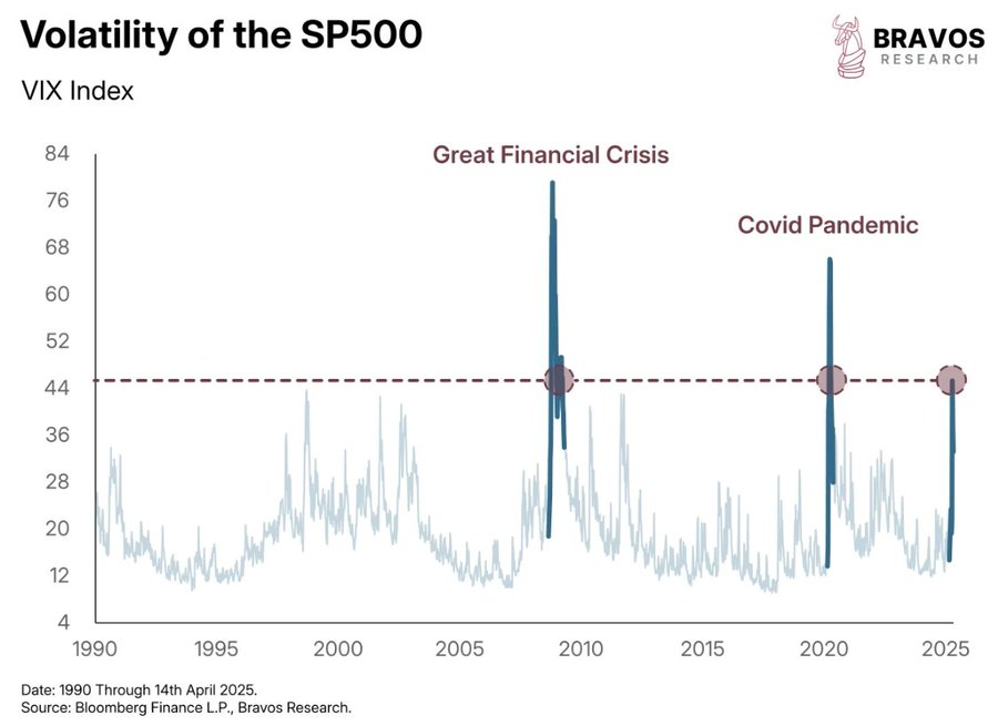 The fear that gripped investors showed up in the VIX Fear & Greed Index, which hit levels seen only two times since 1990: the 2008 Great Financial Crisis and the 2020 Covid-19 pandemic.