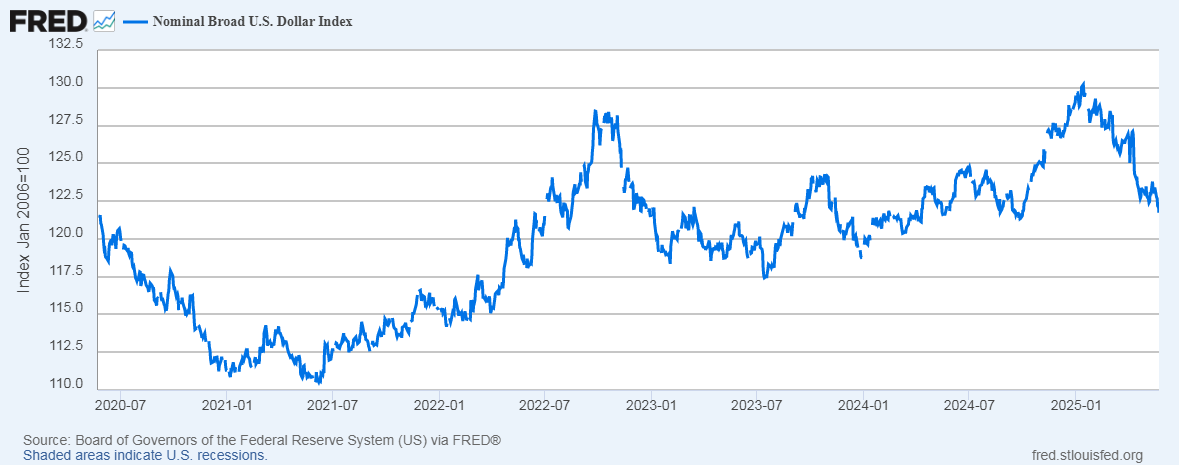 The dollar has been slipping, which lends strength to stocks.