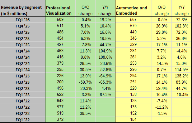 Visualization and automotive both were down from the January quarter, but they are so small that it doesn’t matter.