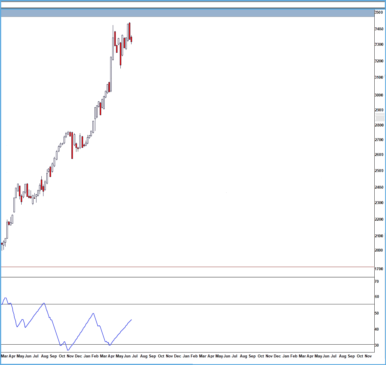 Gold ($3,341.60) was down a bit for the week as Iran did not go full suicide mode after President Trump bombed their nuclear facilities. But it’s still near its all-time highs because it’s obvious that is a very unstable situation.