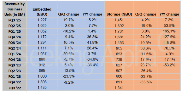 On the conference call (AUDIO HERE and SLIDES HEREand PREPARED REMARKS HERE and TRANSCRIPT HERE) and follow-up analyst call (AUDIO HERE and TRANSCRIPT HERE), CEO Sanjay Mehrotra said they expect high teens DRAM bit growth this year, so: “We are on track to deliver record revenue with solid profitability and free cash flow in fiscal 2025, while we make disciplined investments to build on our technology leadership and manufacturing excellence to satisfy growing AI-driven memory demand.”