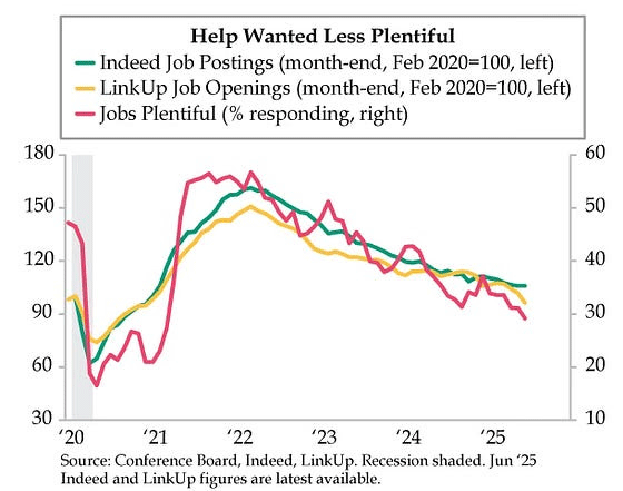 The latest Conference Board Consumer Confidence report said that households’ “appraisal of current job availability weakened for the sixth consecutive month” and consumers “were more pessimistic about business conditions and job availability over the next six months.”