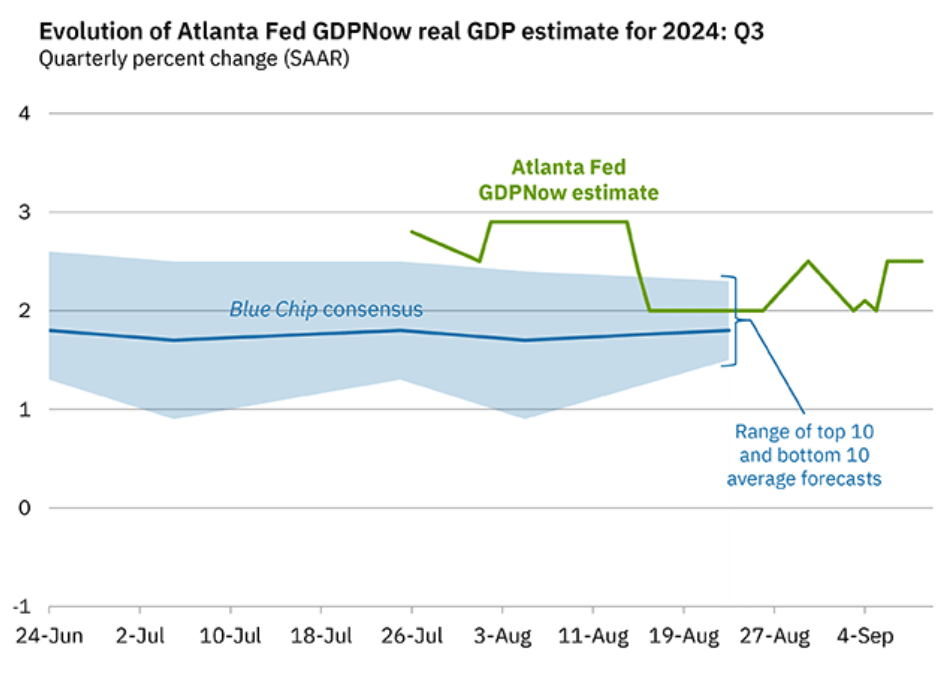 The Atlanta Fed’s GDPNow model for September quarter real GDP growth increased to +2.5% due to increases in personal consumption expenditures growth and especially in private domestic investment growth.