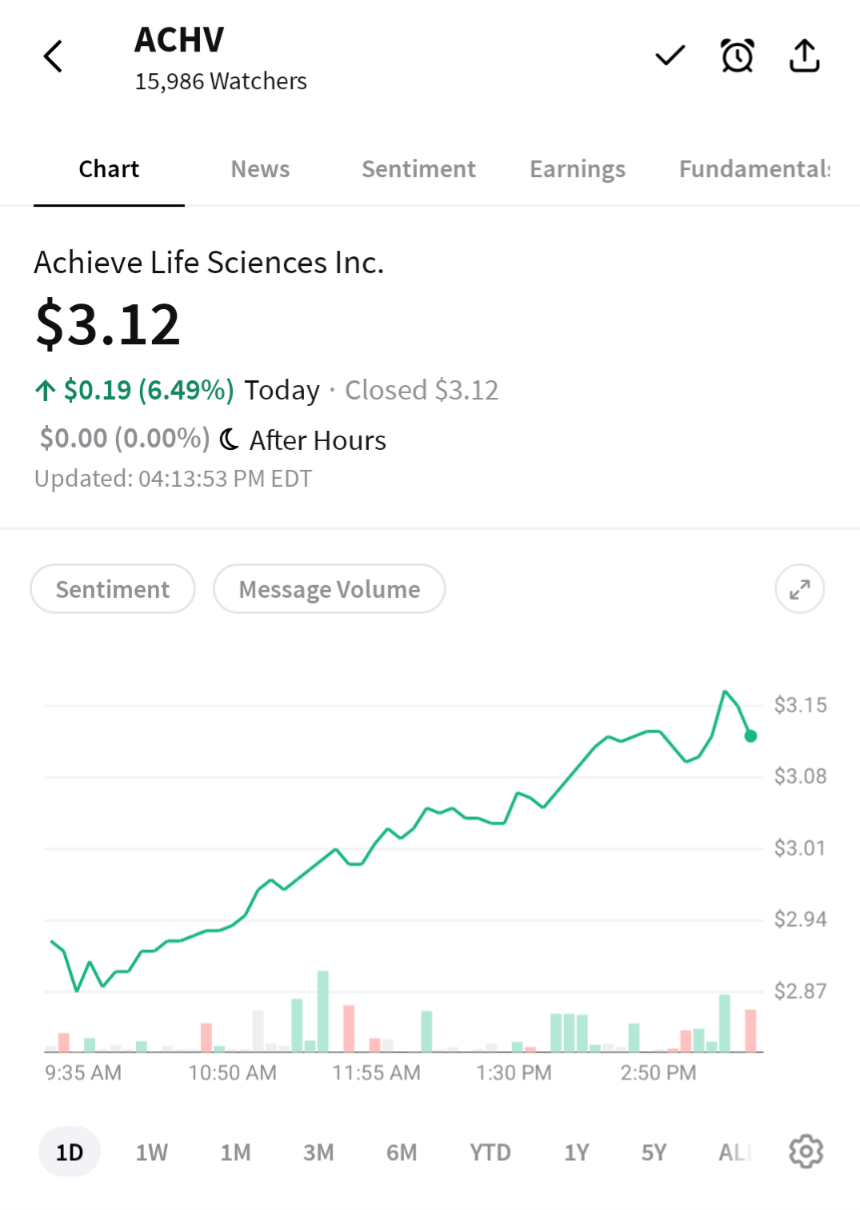 How about PPS in triple digits after a few years? With ARNA’s obesity drug, the PPS plunged after approval, so seasoned investors correctly sold on approval. Currently, wt loss drugs like GLP-1 agonists are much more effective, although with lots of risks. For antismoking drugs, ACHV’s will be the most effective. The question is whether insurers will cooperate and draw in the smoking and vaping population. If nothing else, vaping approval will come later and provide another boost to the stock after approval for smoking cigarettes only.