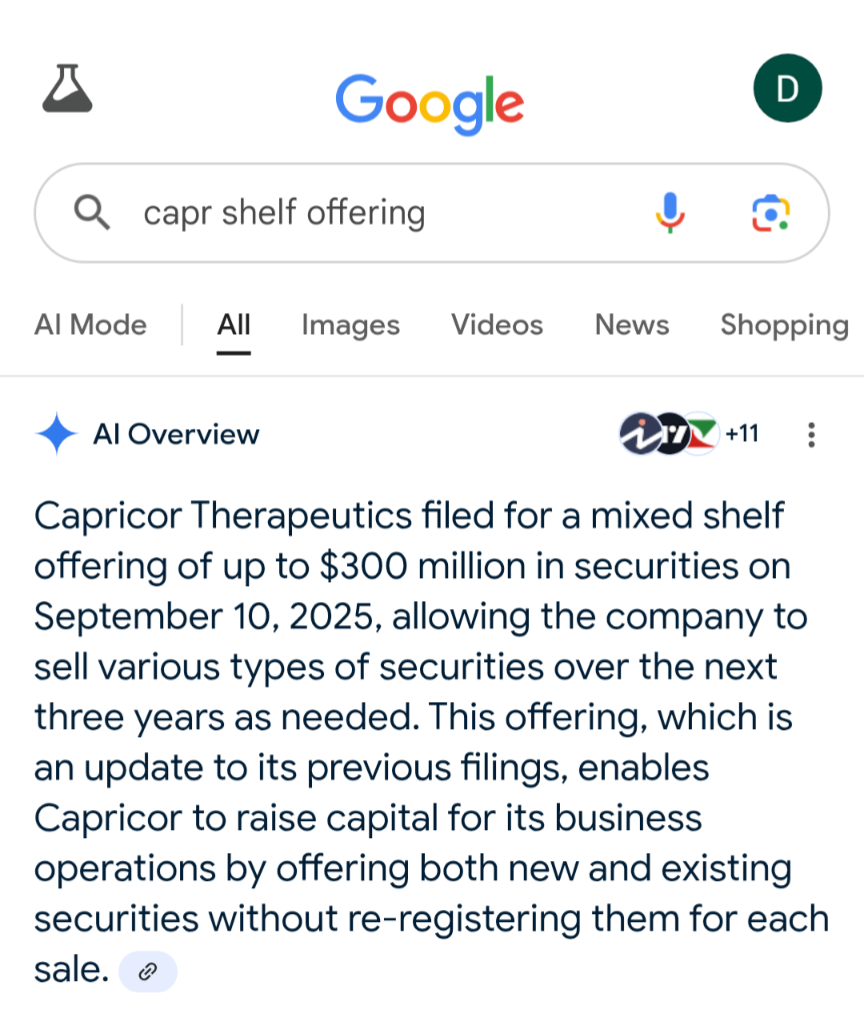I see that people panicked last night when CAPR mentioned the shelf offering. Is it possible they got word back from the FDA and they want to be prepared for production?
